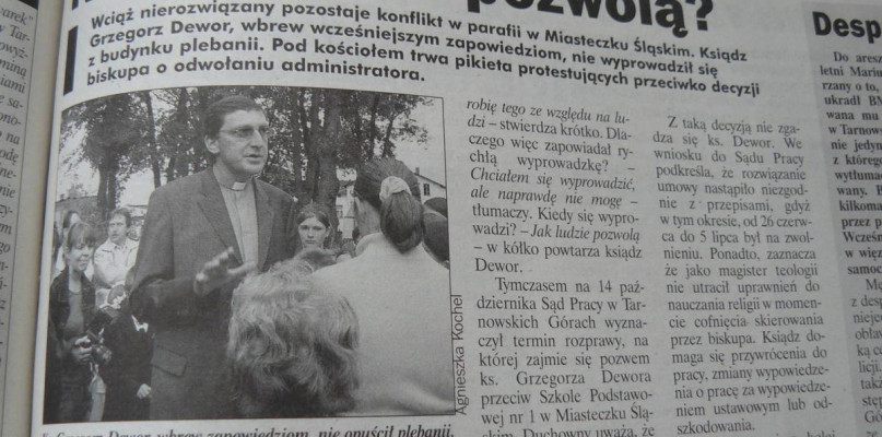 Sprawą odwołania ks. Grzegorza Dewora z funkcji administratora parafii pw. Wniebowzięcia NMP żyło całe Miasteczko Śląskie. Organizowano protesty, blokowano plebanię. Pokłosiem konfliktu było referendum o odwołanie ówczesnego burmistrza.