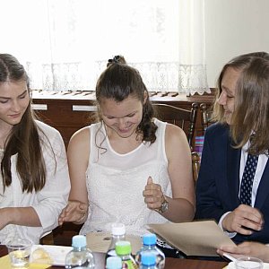 Wizyta przyszłych licealistów w siedzibie gminy jest już tradycją. To forma uhonorowania ich osiągnięć, ale także zaakcentowania, skąd pochodzą, co wiele razy podkreślał wicewójt Klaudiusz Wieder. Scenariusz jest co roku podobny: wręczenie wyróżnień i upominków gimnazjalistom, poczęstunek i rozmowa o ich planach, wspólne zdjęcie i zwiedzanie siedziby urzędu. Uczniowie mieli okazję zajrzeć do sali ślubów i gabinetu wójta, a nawet zasiąść w jego fotelu, na co jednak żaden się nie zdecydował.