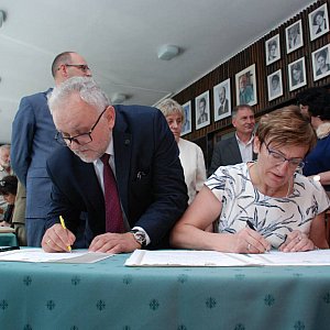 Wraz z aktem erekcyjnym podpisanym przez obecnych na uroczystości gości, w kapsule czasu umieszczono aktualny numer tygodnika Gwarek, dwa numery szpitalnego biuletynu "Wieści z Rept", polskie banknoty i monety oraz różaniec dyrektora placówki Krystiana Oleszczyka. - Chciałem w ten symboliczny sposób sprawy naszych chorych powierzyć Opatrzności - mówił. (hm)