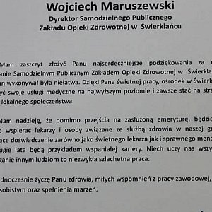 Wieloletni dyrektor Samodzielnego Publicznego Zakładu Opieki Zdrowotnej w Świerklańcu Wojciech Maruszewski przeszedł na emeryturę. Oficjalne pożegnanie dyrektora odbyło się na pod koniec października na sesji rady gminy.
