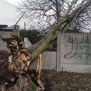 Jak już pisaliśmy, wiatr zerwał dach domu w Zbrosławicach. Wczoraj było też zgłoszenie o dachówce spadającej z dachu kościoła w Miasteczku Śląskim. Wiatr uszkodził dach domu przy ul. Huzarów w Radzionkowie. Poza tym zgłoszenia dotyczyły przede wszystkim powalonych drzew, konarów, zerwanych przewodów internetowych, blach, opierzeń dachów, zerwanych banerów reklamowych, przewróconych blaszanych garaży. W Zbrosławicach wiatr porwał trampolinę, która zawisła na słupie energetycznym.