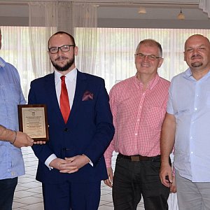 Odebrali je: Bank Spółdzielczy w Tarnowskich Górach, Bank Spółdzielczy w Tworogu, BP Service Center Pilot sp.j., Centrum Elektroniki Arkadiusz Wlazłowski i Rafał Wlazłowski (na zdj. z prezesem IPH Aleksandrem Königiem i dyrektorem biura IPH Ireneuszem Stelnickim). Obiektywny Doradca Ubezpieczeniowy dla OVB Andrzej Polański, XEOOS Polska Piotr Kopyczyński. (mir)