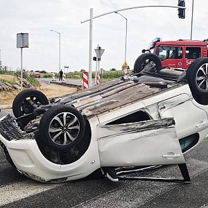 Kobieta straciła panowanie nad samochodem. Citroen dachował. 46-latka trafiła do szpitala, jednak okazało się, że nie odniosła poważniejszych obrażeń. Za spowodowanie kolizji dostała mandat. (esp)