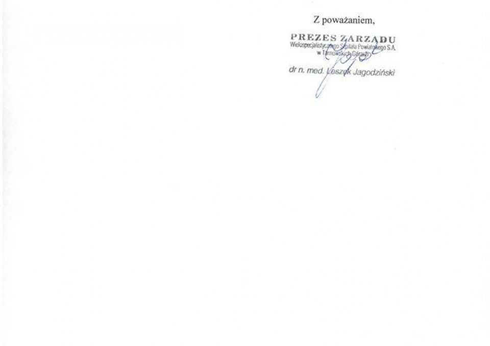 Szpital zwrócił się do firmy cateringowej o wyjaśnienia, nałożył też na nią karę umowną przewidzianą w umowie. Jeśli jej warunki dalej będą naruszane, placówka grozi rozwiązaniem umowy i szukaniem nowego dostawcy. W oświadczeniu jest też mowa o tym, że prezes szpitala dr Leszek Jagodziński osobiście przeprosił pacjenta. "Zapewniamy, że szpital dokłada najwyższych starań o jak najwyższy poziom świadczonych usług zdrowotnych, których jakość potwierdza sam pacjent w skardze na firmę cateringową (...)".