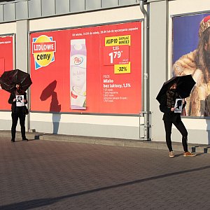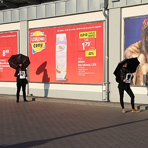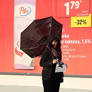 W Tarnowskich Górach o godz. 18 przed jednym z marketów pojawiły się dwie kobiety – z plakatami i czarnymi parasolami, które są symbolem protestu. Jeszcze zanim ustawiły się w kolejce na miejsce przyjechał patrol policji. Po chwili odjechał. Kiedy dziewczyny stanęły w kolejce, przepuszczając innych kupujących, wyszła do nich pracownica marketu. Prawdopodobnie potem wezwała służby. Na miejsce wróciła policja. Tym razem były to dwa radiowozy i w sumie 4 funkcjonariuszy. Najpierw spisali dziennikarkę "Gwarka", która była na miejscu. Dostała też ostrzeżenie, że grozi jej mandat, jeśli nie zakończy w tej chwili pracy.
