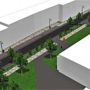 Tak ma wyglądać przebudowana ul. Sobieskiego w Tarnowskich Górach. Wizualizację dwóch fragmentów drogi wykonało biuro Archez na zlecenie Miejskiego Zarządu Ulic i Mostów w Tarnowskich Górach.