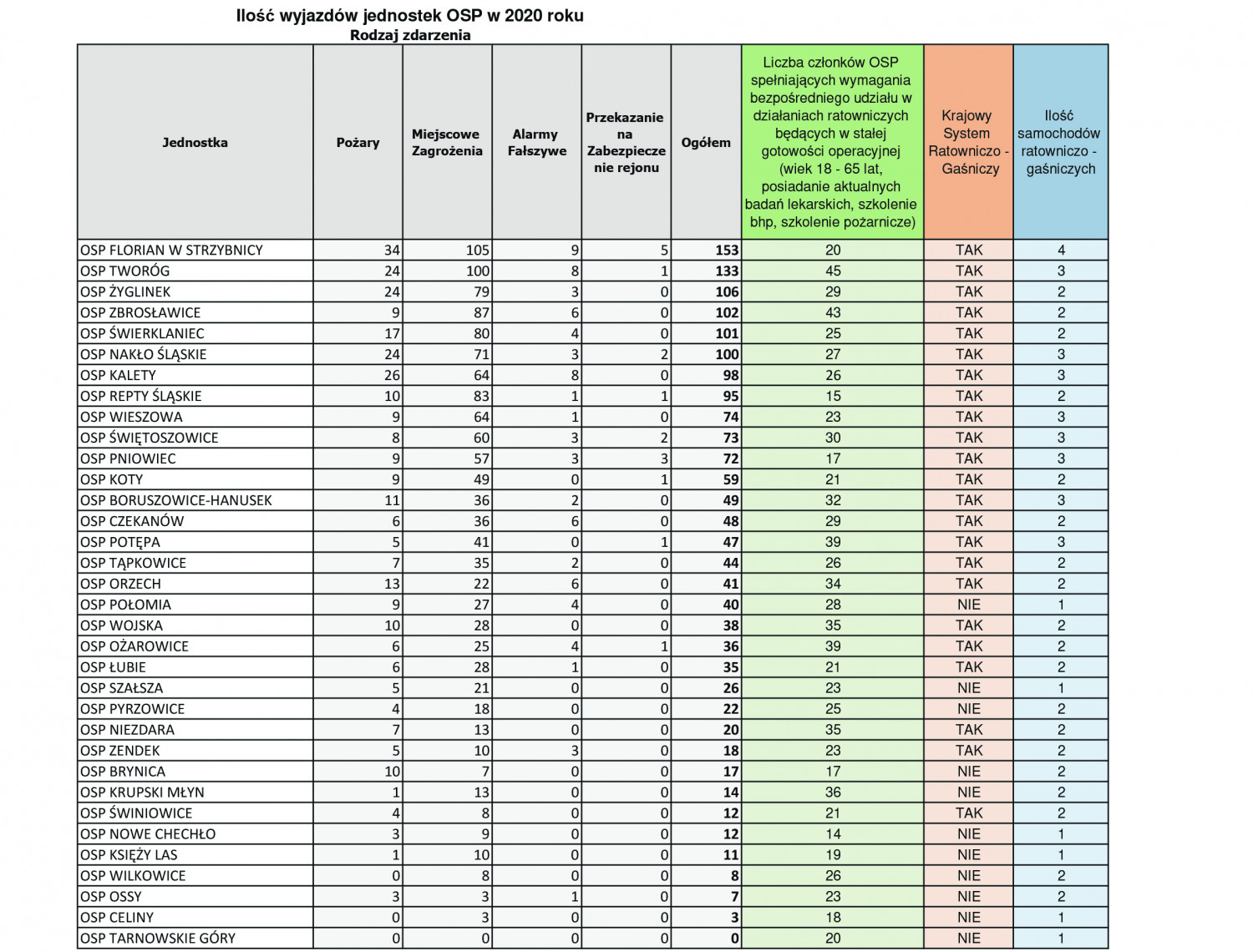 I tak OSP Tworóg wyjeżdżała 133 razy, OSP Żyglinek 106, OSP Zbrosławice 103, OSP Świerklaniec - 101 a OSP Nakło Ślaskie - 100.