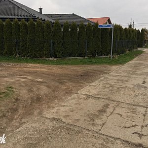 Jest też odcinek z nawierzchnią bitumiczną, przy którym znajduje się próg zwalniający.
