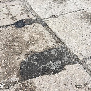 Bądźcie zadowoleni co macie. Hulajnoga czy rower jest nie na taką drogę z płyt drogowych. Ten co dziecko puszcza na taką drogę ma świadomość że naraża na wypadek, oczywiście ciężki sprzed tonażowo po ulewie rozrusza jego konstrukcję. Dlatego tworzą się szczeliny między płytami. Do tego nie potrzeba uniwersytetu zaliczyć . Zakazać wjazdu do 2.5 tony i problem byłby załatwiony. Ubytki nie będą się pojawiać. Zarząd .