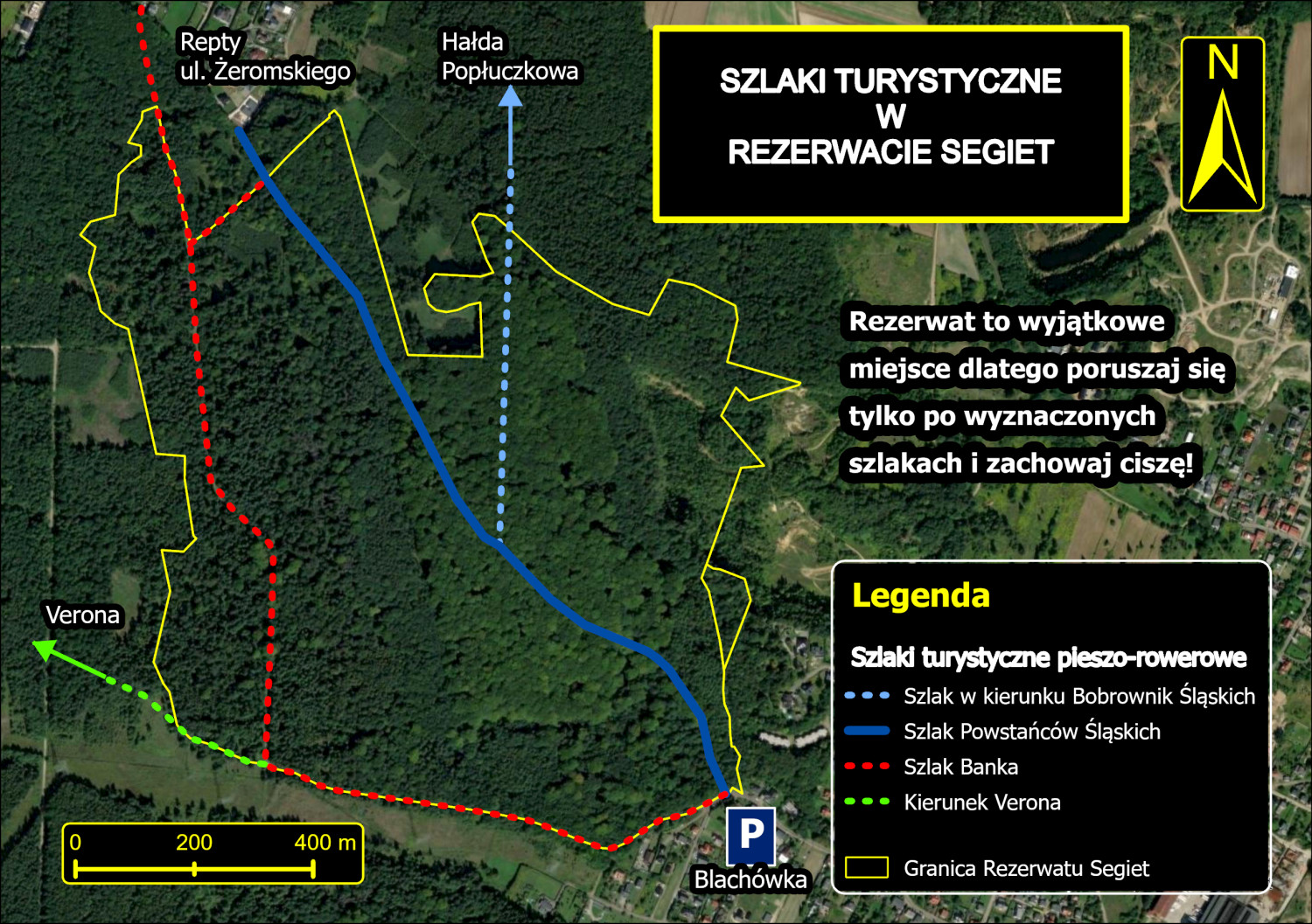 Na początku maja Regionalna Dyrekcja Ochrony Środowiska w Katowicach wydała zarządzenie w sprawie wyznaczenia szlaków w rezerwacie Segiet. – Zgodnie z tym dokumentem wydłużono przebieg szlaku Powstańców Śląskich – jedynego jak do tej pory szlaku w rezerwacie Segiet oraz dodano dwa nowe szlaki tzw. szlak Banka oraz szlak północny biegnący w kierunku Bobrownik Śląskich i hałdy popłuczkowej. Ten ostatni został wytyczony w starej części rezerwatu – wyjaśnia Wojciech Sutor, prezes Fundacji Srebrne Buki i inicjator powiększenia rezerwatu.