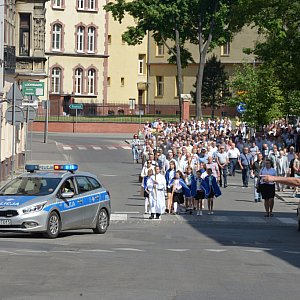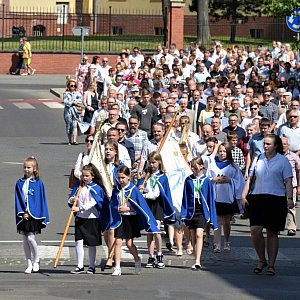 W tym roku procesja wyruszyła z kościoła pw. Matki Bożej Królowej Pokoju i od razu przy ul. Powstańców Śląskich był pierwszy ołtarz. Kolejny ustawiono u zbiegu ulic Opolskiej i Cebuli, dwa następne na rynku.