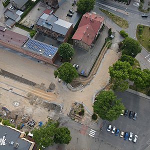 Roboty rozpoczęły się w marcu 2022 r. Ledwo się zaczęły, zaraz je przerwano. W zasadzie zdołano tylko wyburzyć stojące tam budynki. Podczas prac natrafiono na zbiornik niewiadomego przeznaczenia. Nie było go na mapach, potem nie potrafiono znaleźć jego właściciela. Budowla o wymiarach 20 na 10 metrów była najprawdopodobniej basenem przeciwpożarowym. Ponieważ ostatecznie nikt do niej się nie przyznał, nie potwierdzono tego. Gdy już udało się dopełnić formalności na wyburzenie zbiornika na koszt gminy, okazało się, że to nie jedyna przeszkoda w prowadzeniu robót. Problemem okazały się przewody o nieznanym przeznaczeniu, które trzeba przełożyć.