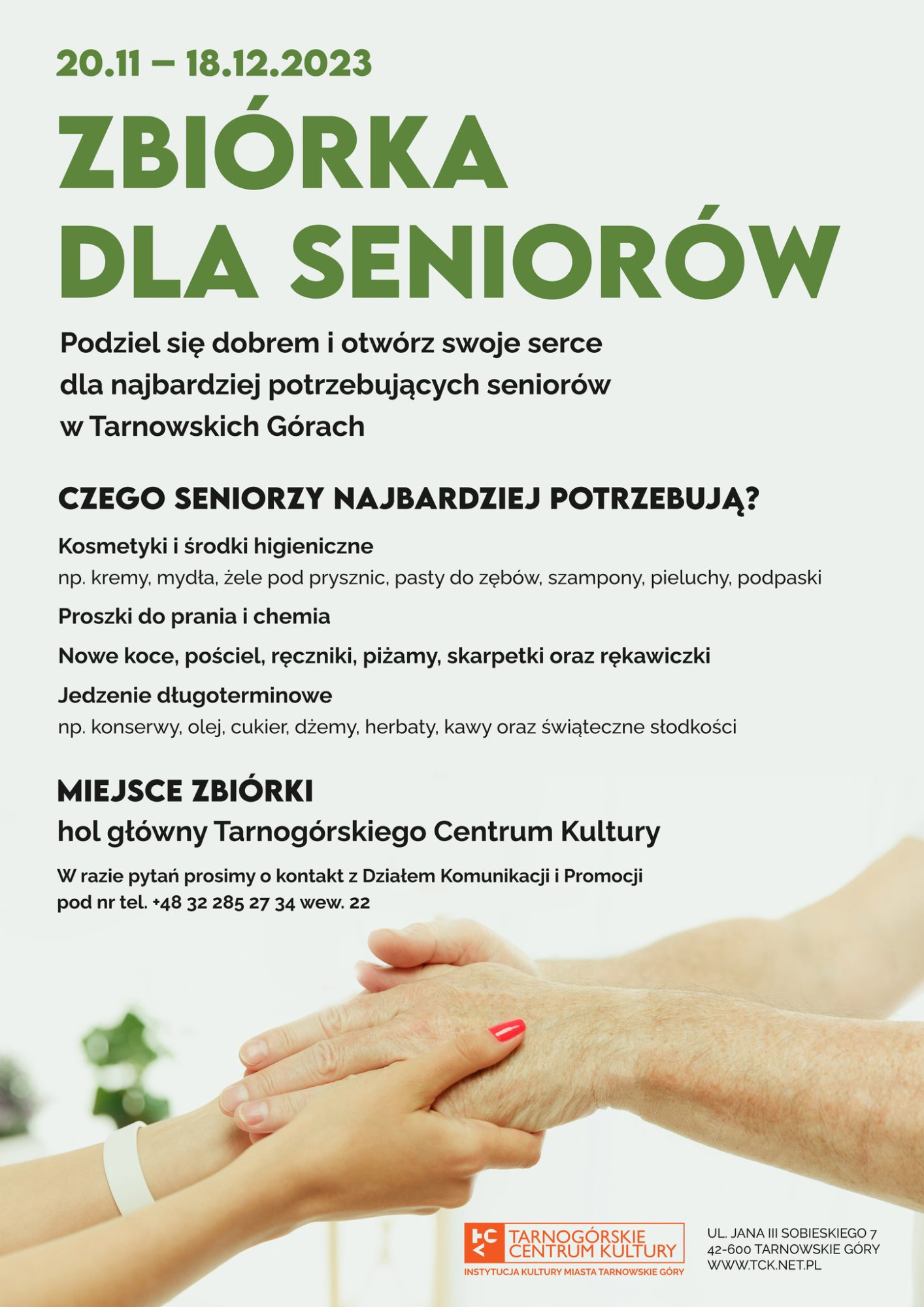 Tarnogórskie Centrum Kultury organizuje zbiórkę dla najbardziej potrzebujących seniorów w Tarnowskich Górach.