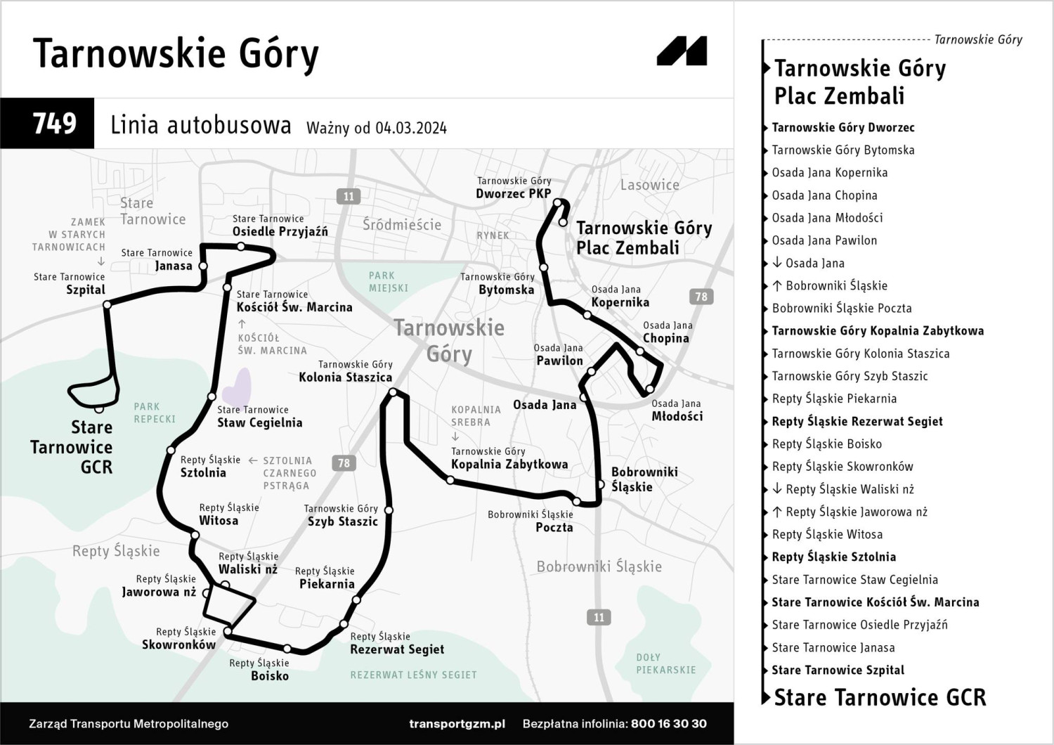 Linię 749 uruchomił ZTM w porozumieniu z samorządem Tarnowskich Gór. Na jej trasie pojawią się miejsca dotąd nieobsługiwane przez komunikację publiczną.