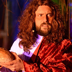 Widowisko jak co roku było świetnie nagłośnione, grę aktorską podkreślało umiejętne oświetlenie. Przygotowywane przez Zespół Pieśni i Tańca "Miedarzanie" ze wsparciem chóru "Allegro" z Tarnowskich Gór misterium opowiada biblijną historię, ale za każdym razem akcent pada na inny motyw. Tym razem były to słowa z Ewangelii św. Jana "Nikt nie ma większej miłości od tej, gdy ktoś życie swoje oddaje za przyjaciół swoich".