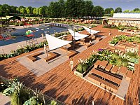 Wokół niecki basenowej oraz wodnego placu zabaw powstaną plaże, a użytkownicy obiektu będą mogli biwakować na przylegającym do kompleksu terenie.