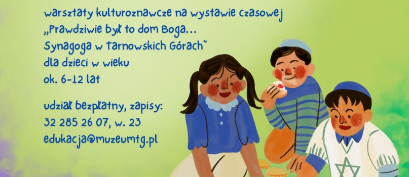 Muzeum w Tarnowskich Górach zaprasza 1 czerwca o godz. 11 i 13 na warsztaty kulturoznawcze związane z wystawą poświęconą synagodze. Będzie mowa o kulturze żydowskiej, jej symbolach i zwyczajach, będzie i czas na prace plastyczne. Warsztaty są dla dzieci w wieku 6–12 lat, mogą w nich uczestniczyć także rodzice. Wstęp jest wolny, jednak obowiązuje rezerwacja miejsc – do 31 maja (e-mail: [email protected]).