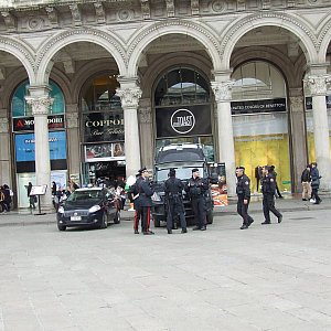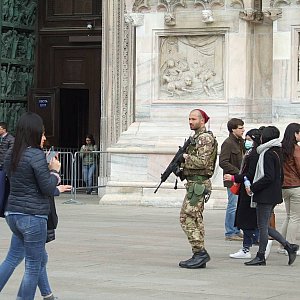 Jednak od katedry odszedłem smętny. Ale jak tu nie być smętnym, kiedy przed wejściem rewiduje mnie najpierw jeden uzbrojony po zęby żołnierz, potem drugi gmyra mi w plecaku, a cały plac katedralny patrolowany jest przez wojsko, policję, karabinierów i kogo tam jeszcze Italia pod bronią ma, i to na dodatek, i z ziemi, i z powietrza, za pomocą służb w autach zwykłych, pancernych, na rowerach, motorach, w śmigłowcach. Smutny to widok. Byłem tu i tam, widziałem to i owo, ale to tutaj mnie przerażało i napawało smutkiem, że ledwo wleźliśmy do Europy, ledwo zdążyliśmy jej posmakować, już nam ją ktoś odbiera.