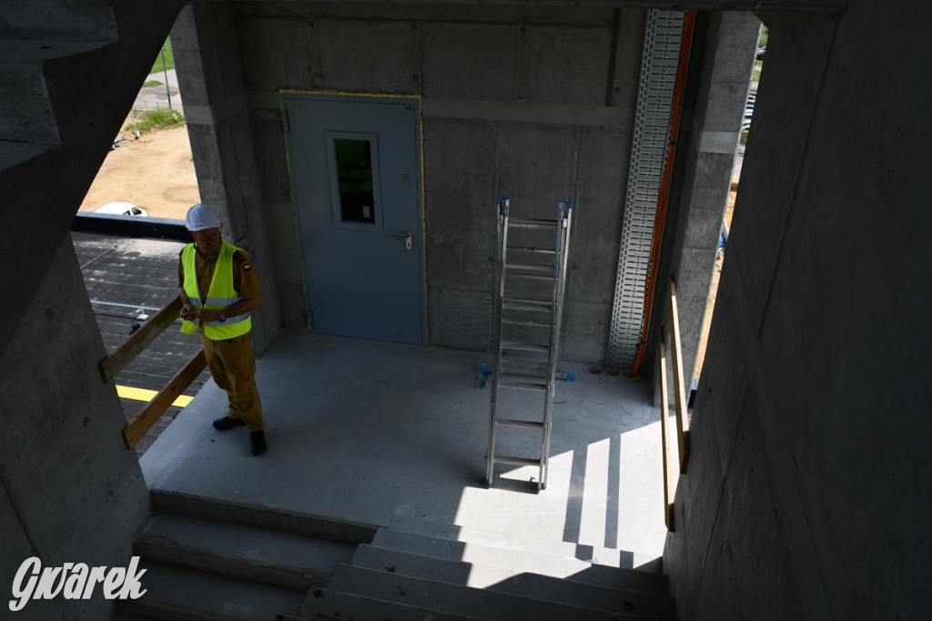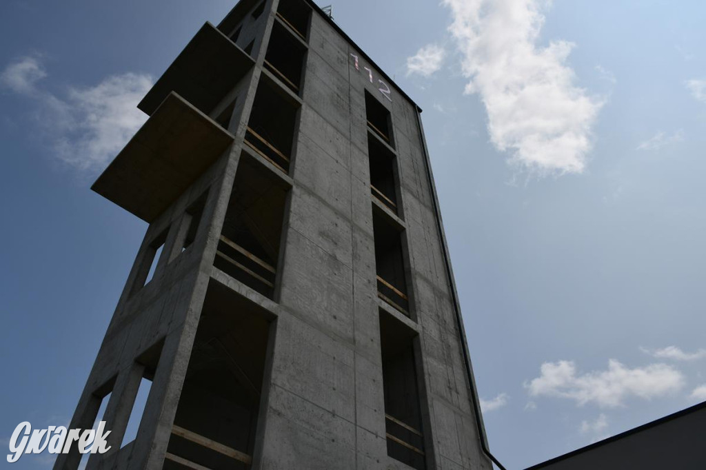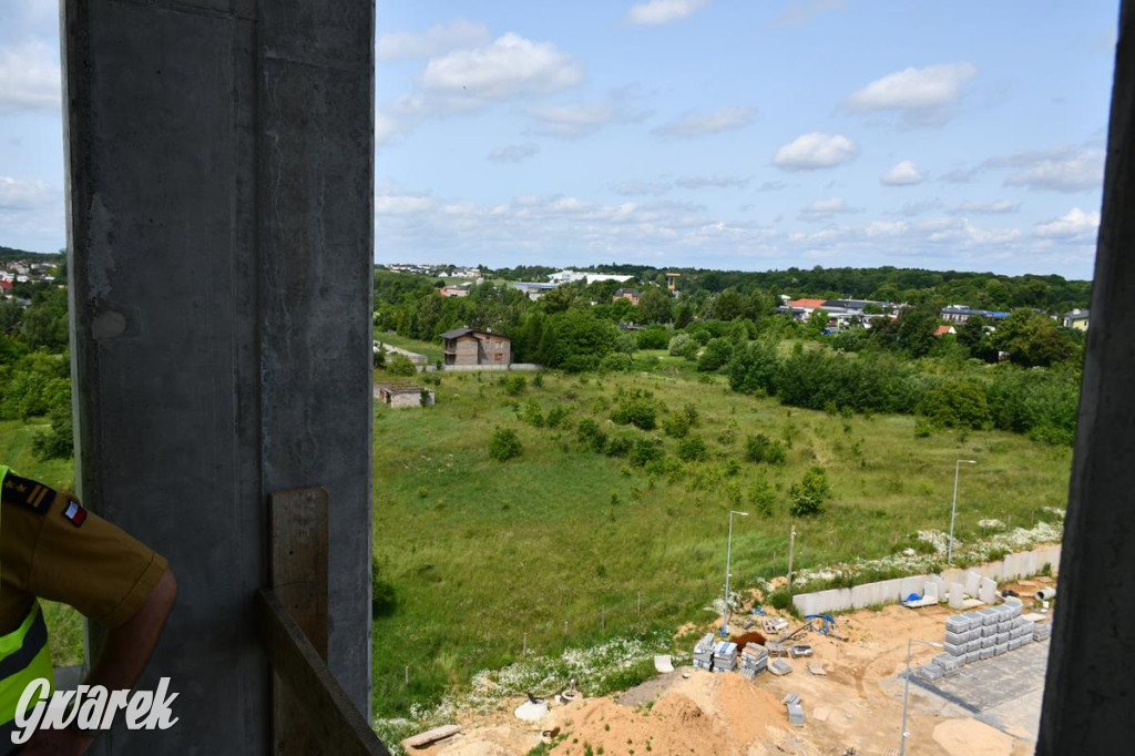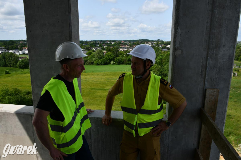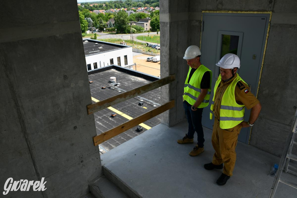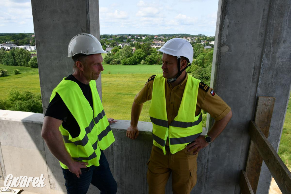 – Problemem była jej wysokość w połączeniu z niewielkimi gabarytami – tłumaczy Adrian Machoń, kierownik budowy z Przedsiębiorstwa Instalacyjno-Montażowego K.Z. ze Strzybnicy, które buduje strażnicę. – Musieliśmy skorzystać z żurawia, a kolejne piętra powstawały powoli – jedno co dwa, trzy tygodnie i to pod warunkiem, że były odpowiednie warunki atmosferyczne - dodaje.