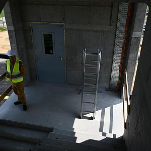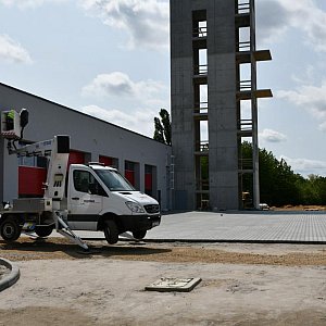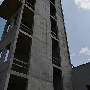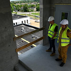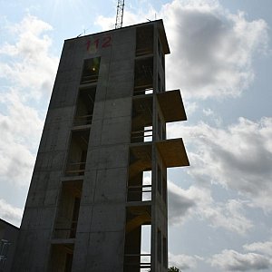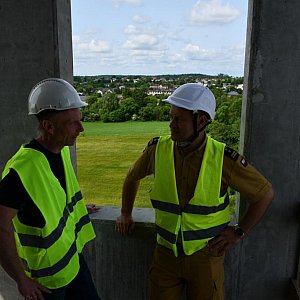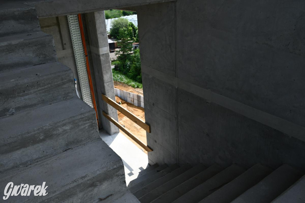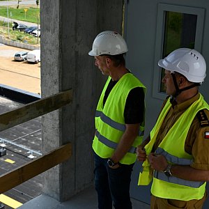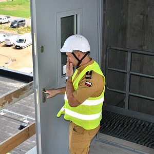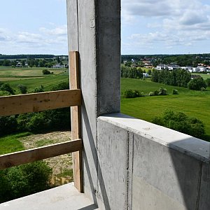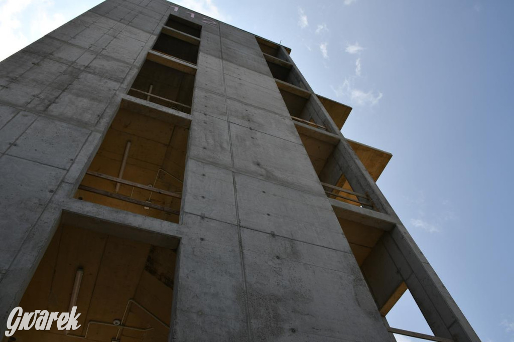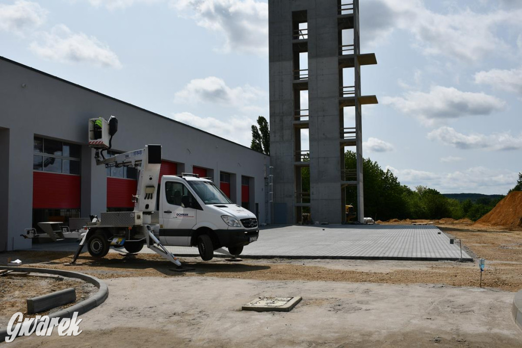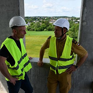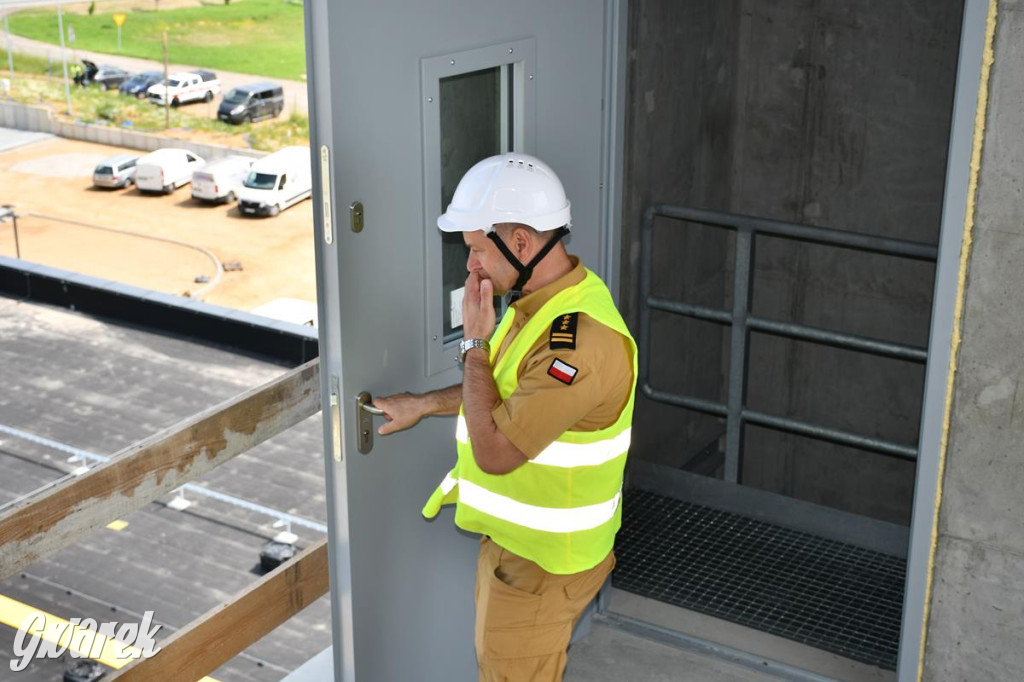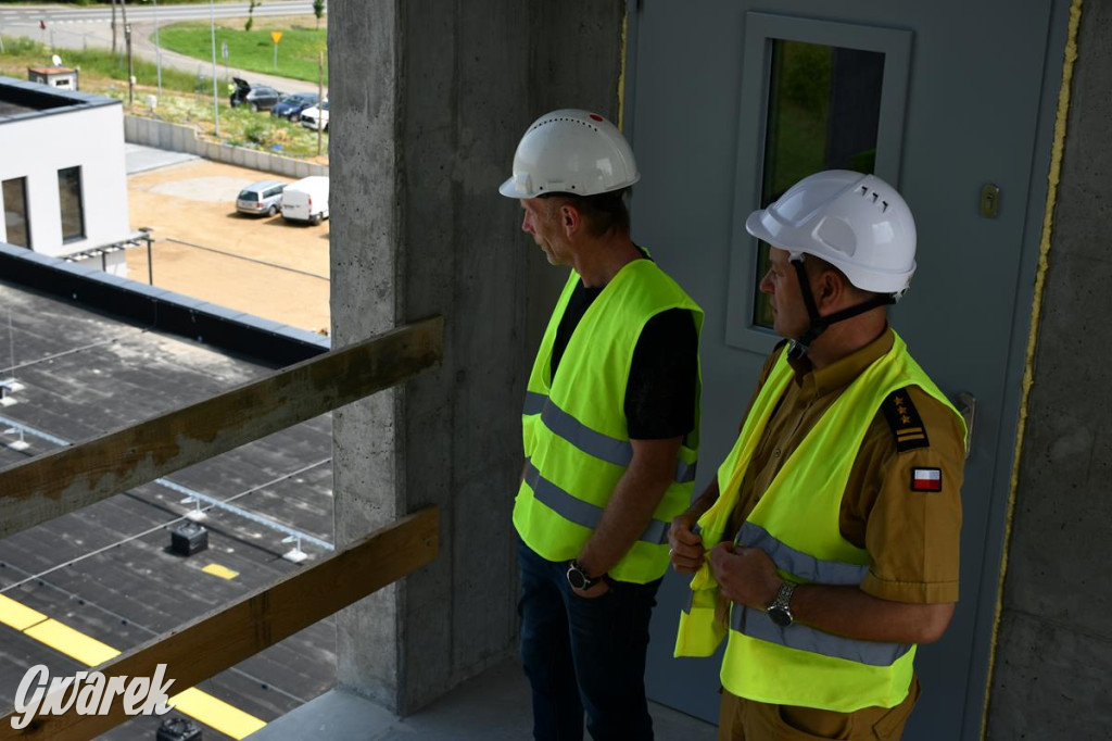 – Problemem była jej wysokość w połączeniu z niewielkimi gabarytami – tłumaczy Adrian Machoń, kierownik budowy z Przedsiębiorstwa Instalacyjno-Montażowego K.Z. ze Strzybnicy, które buduje strażnicę. – Musieliśmy skorzystać z żurawia, a kolejne piętra powstawały powoli – jedno co dwa, trzy tygodnie i to pod warunkiem, że były odpowiednie warunki atmosferyczne - dodaje.