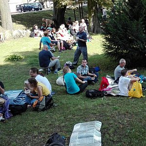 Pielgrzymi mogli posilić się w parku gorącym żurkiem lub zupą pomidorową. W poprzednich latach gotowaniem ok. 200 litrów zupy zajmowały się miejscowe gospodynie. W tym, parafianie zebrali pieniądze, a posiłek przygotowała Restauracja Pod Złotym Prosiakiem.