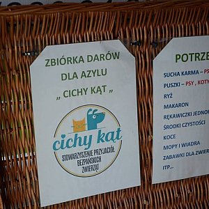 Organizatorami zbiórki są: C H U Hala oraz Stowarzyszenie Pomocy Bezpańskim Zwierzętom Azyl dla zwierząt "Cichy Kąt". Podarujmy zwierzakom prezenty na święta i nowy rok! Zbiórka potrwa do 15 stycznia. Kosze ustawione są przy trzech wejściach do hali. (e)