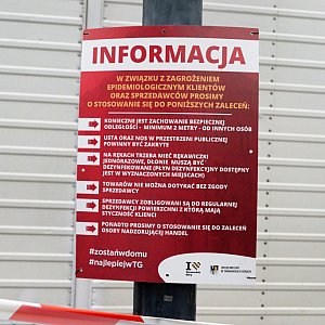 Część przy ul. Królika i Szymały jest otoczona taśmą, a na plac można wejść tylko w dwóch miejscach. Obowiązuje dezynfekcja rąk, o czym przypominają wyznaczeni pracownicy. Pozostałe zasady bezpieczeństwa wypisano na zawieszonych przy placu planszach.