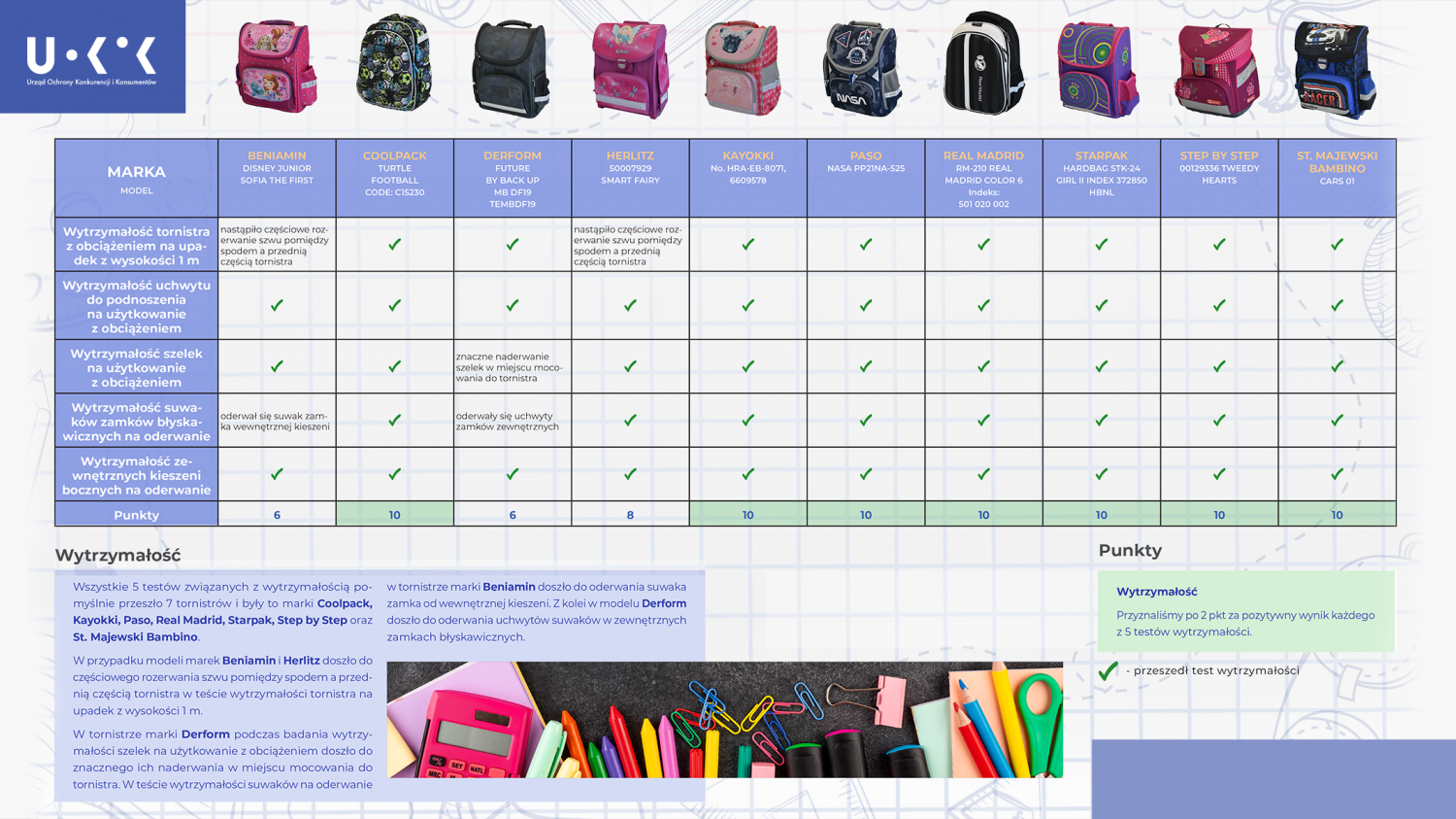 Urząd Ochrony Konkurencji i Konsumentów przetestował 10 modeli tornistrów. Jakie są wyniki testów?