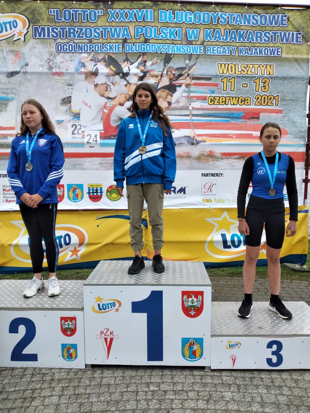 Natalia Szołtysik wywalczyła mistrzowski tytuł w wyścigu K1 na dystansie 5000 m. Wyprzedziła na mecie o jedną sekundę zawodniczkę Sparty Augustów Natalię Skowrońską. W kategorii juniorek młodszych Dominika Hewig zdobyła medal brązowy w konkurencji K1 na dystansie 10 000 m.
