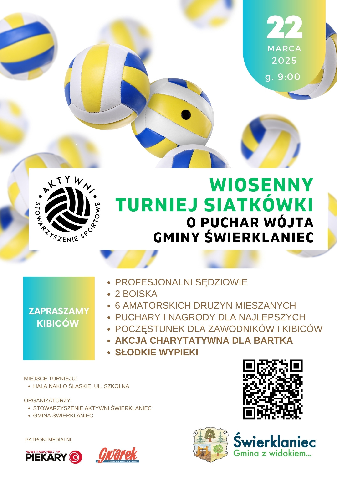 Samorząd i Stowarzyszenie Aktywni zapraszają na Wiosenny Turniej Siatkówki o Puchar Wójta Gminy Świerklaniec.