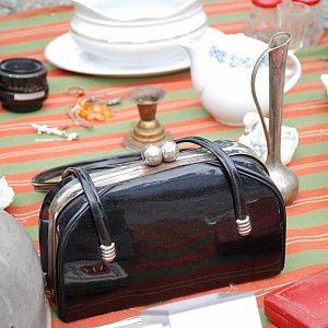 Najciekawsze przedmioty sprzedano już z samego rana. Co nie znaczy, że i później nie było na czym oka zawiesić. Na samym rogu spotkać można było tarnogórzanina Józefa Poloczka. Na pchlim targu pojawia się od samego początku jego istnienia. Pytany o najciekawszą rzecz jaką ma w sprzedaży pokazuje na wieko ze starej węglarki tzw. kołkastli. Jego wnuczka Nikola, która tuż obok sprzedawała z powodzeniem ubrania, zwracała uwagę na starą torebkę ze zbiorów dziadka, która przykuła jej wzrok.