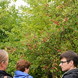 Z tej okazji można było zwiedzić ogród i przyjrzeć mu się na przykład pod kątem dziko rosnących roślin jadalnych. Z prawie wszystkich można zrobić nalewkę, ale wiele z nich znajduje zastosowanie w medycynie, kosmetyce i kuchni. Mimo niesprzyjającej pogody, całą sobotę padał deszcz, chętnych do udziału w zajęciach nie brakowało. Laboratorium oraz pracownia mikroskopowa miały pełne audytorium, najmłodszym przypadły do gustu zwłaszcza warsztaty artystyczne. Podczas dożynek rozdawano sadzonki starych lokalnych odmian jabłoni. (mir)