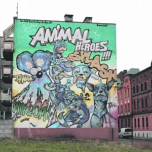 W samym centrum miasta, przy ul. Wigury, widnieje mural "Animal heroes". W 2012 r. zrealizował go zespół artystów z grupy Nietak.eu. Jego pomysłodawcą był Łukasz Zasadni, który wystąpił ze stosownym wnioskiem do piekarskiego magistratu. Obraz zrealizowany w konwencji komiksowej, przedstawia zwierzęta w roli superbohaterów. – Nie są to jednak przypadkowe zwierzaki, a postacie, które możemy spotkać na ulicach miast całego kraju, jak np. Franek Mysza – mówi Łukasz Zasadni.