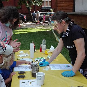 Gminna Biblioteka Publiczna w Świerklańcu zaprosiła dzieci na zajęcia zabawy sensoryczne, sensoplastyczne i plastyczne w plenerze. Kolejne będą 6 i 20 sierpnia. Fot. Archiwum biblioteki