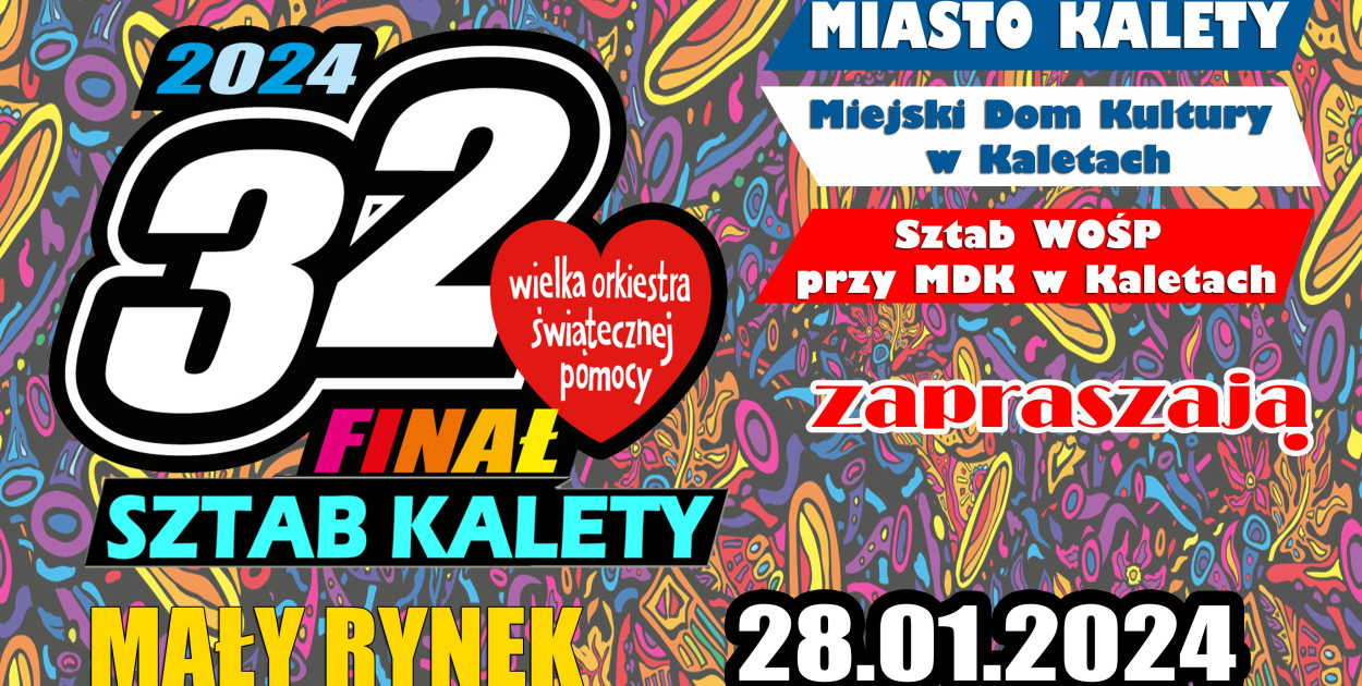Kalety oraz Sztab WOŚP przy Miejskim Domu Kultury w Kaletach zapraszają na Mały Rynek. W niedzielę, 28 stycznia odbędzie się tam 32. finał Wielkiej Orkiestry Świątecznej Pomocy.