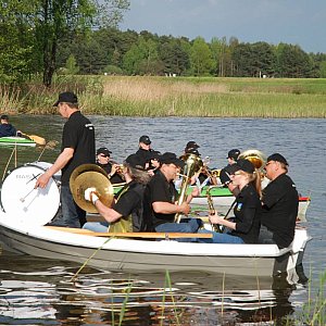 Najpierw turystów próbowały przestraszyć ołowiane chmury, a gdy przedarły się przez nie promienie słońca, we znaki dawał się porywisty wiatr. Dlatego Miejską Orkiestrę Dętą z Kalet, która postanowiła dać koncert z kajaków i łodzi, podmuchy spychały daleko od plaży, na której zebrała się publiczność. Ale muzykę niosło po wodzie i mimo porywów wichury całkiem nieźle było słychać, a w czasie występów mażoretek \"Inez\" muzycy odkładali instrumenty i łapali za wiosła, by podpłynąć bliżej publiczności. Trębacze, puzoniści i klarneciści za nic mając wysokie fale i zamoczone nuty, z pasją oddawali się muzykowaniu.