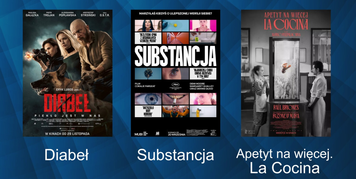 Do wyboru są: thriller psychologiczny „Diabeł”, body horror „Substancja” oraz dramat „Apetyt na więcej. La Cocina”.