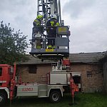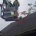 Wczoraj OSP Ożarowice została wezwana do kota, który wszedł na dach stodoły i nie potrafił zejść. Udzielenie pomocy mruczkowi okazało się skomplikowane, bo sama drabina nie wystarczyła. Konieczne okazało się użycie podnośnika, na miejsce przyjechali też strażacy z JRG Radzionków. Tyle tylko, że kot na widok strażaków sam się ewakuował z dachu.
