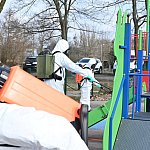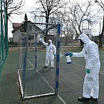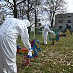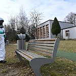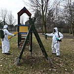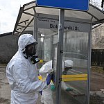 36 żołnierzy w sześciu ekipach wyjechało dziś rano z 5. Pułku Chemicznego im. Leona Berbeckiego, aby zacząć akcję dezynfekcji przystanków, placów zabaw i boisk w Tarnowskich Gór. Do końca tygodnia wojskowi odkażą 5-procentowym roztworem nadtlenku wodoru także starostwo powiatowe, noclegownię oraz dworzec autobusowy. Ten ostatni zostanie spryskany dziś w nocy.