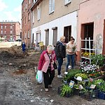 Pani Krysia od 20 lat handluje kwiatami na targu w Tarnowskich Górach. – Wszyscy znają mnie i moje kwiatki – mówi. Na czas remontu dawnego targu wynajęła lokal nieopodal, przy ul. Szymały. Niestety, ulica jest rozkopana, a przy jej lokalu i sąsiednim sklepie z używaną odzieżą nie ma nawet kładek. - Zarobiłam dziś 5 zł - mówi pani Wiola, która prowadzi sklep z odzieżą.