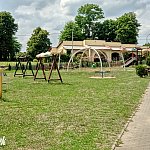 Plac zabaw w Koszęcinie znajduje się przy domu kultury i jest dowodem, że takie miejsca w mniejszych miejscowościach, bywają czasami lepiej doposażone od placów miejskich.