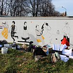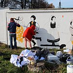 Dziś, 3 listopada na garażach wzdłuż obwodnicy, w dzielnicy Osada Jana w Tarnowskich Górach rozpoczęły się prace związane z muralem. Będzie miał ponad 80 metrów, przy jego powstaniu pracuje kilka osób.