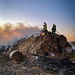 Pożar gaszono na raty, cały czas pilnując pogorzeliska. Potrzebny był m.in. sprzęt do rozwożenia balotów, tak by można było przelać je wodą i ugasić.