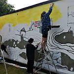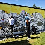 Nowy mural powstał w ogródku Noclegowni dla Bezdomnych oraz Domu dla Bezdomnych Mężczyzn przy ul. Sienkiewicza w Tarnowskich Górach. Najpierw do pracy zabrali się podopieczni noclegowni i przygotowali ścianę pod mural. Potem przyszedł czas na uczennice Zespołu Szkół Artystyczno-Projektowych. Aleksandra Gros, Hanna Pawlak, Marta Zyzik, Marysia Gwóźdź i Kinga Muszalik zrobiły mural. Tworzyły go pod okiem Darii Krzesaj.