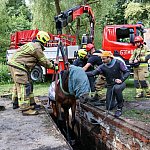 W Krupskim Młynie, przy ul. Mickiewicza koń wpadł do kanału burzowego. Wezwano strażaków, którzy użyli żurawia hydraulicznego. Na miejscu byli: JRG Tarnowskie Góry, JRG Radzionków oraz OSP Potępa.