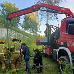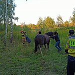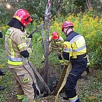 Łatwo nie było, ale udało się wydostać konia ze studzienki.