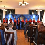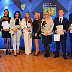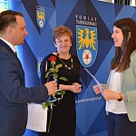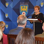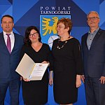 Władze powiatu - starosta Krystyna Kosmala i przewodniczący rady Przemysław Cichosz złożyli podziękowania i gratulacje Bogusławie Mikołajczyk - nauczycielce z Zespołu Szkół Chemiczno- Medycznych i Ogólnokształcących w Tarnowskich Górach, która była jedną z finalistów w ogólnopolskim konkursie Nauczyciel Jutr@.