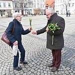 Z okazji Dnia Kobiet, jak co roku, burmistrz Arkadiusz Czech rozdawał paniom kwiaty. Pomagali mi przewodniczący rady miejskiej Adrian Wolnik, skarbnik Mariusz Konopka, radni i urzędnicy.