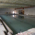W Radzionkowie budują krytą pływalnię z saunami i jacuzzi. Odbyło się próbne napełnienie głównej niecki basenu.