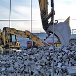 Na teren właśnie wjechał ciężki sprzęt i rozpoczęła się rozbiórka - części parkingu, demontowane są też ściany hali marketu.